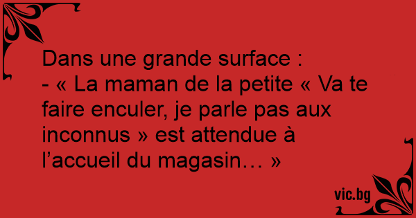 - « La maman de la petite « Va te faire enculer, je parle pas aux inconnus » est attendue à l’accueil du magasin… »
