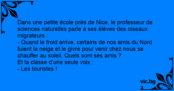 Dans une petite école près de Nice, le professeur de sciences naturelles parle à ses élèves des oiseaux migrateurs :