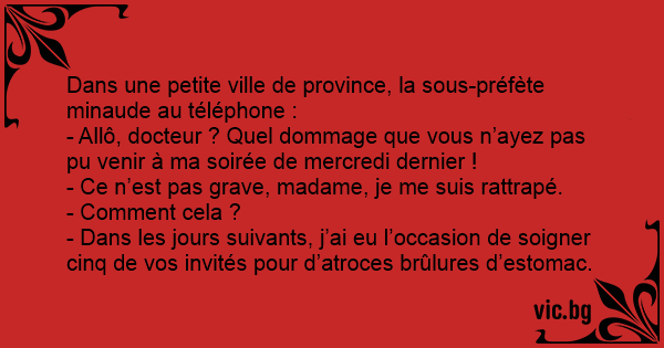 - Allô, docteur ? Quel dommage que vous n’ayez pas pu venir à ma soirée de mercredi dernier !