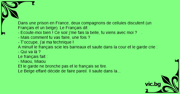 Dans une prison en France, deux compagnons de cellules discutent (un Français et un belge). Le Français dit :