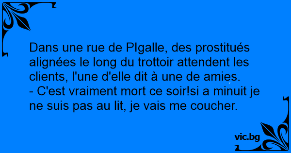 Dans une rue de PIgalle, des prostitués alignées le long du trottoir attendent les clients, l'une d'elle dit à une de amies.