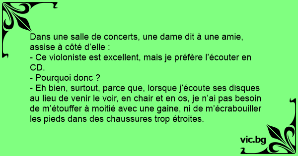Dans une salle de concerts, une dame dit à une amie, assise à côté d’elle :