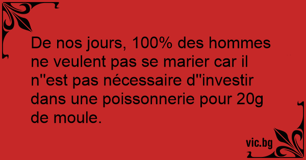 De nos jours, 100% des hommes ne veulent pas se marier car il n''est pas nécessaire d''investir dans une poissonnerie pour 20g de moule.