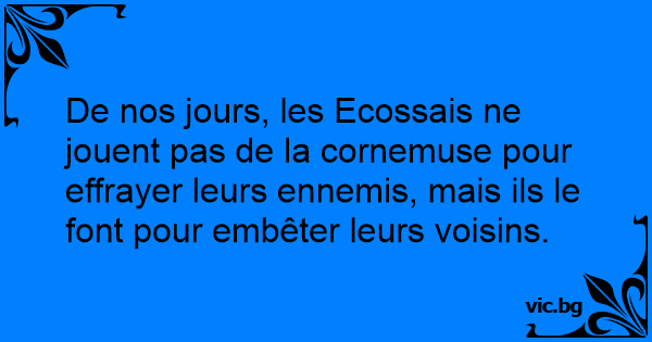 De nos jours, les Ecossais ne jouent pas de la cornemuse pour effrayer leurs ennemis, mais ils le font pour embêter leurs voisins.