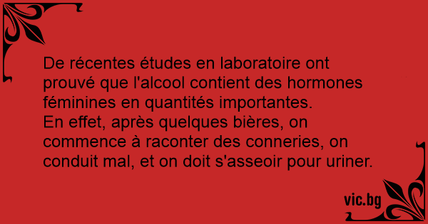 De récentes études en laboratoire ont prouvé que l'alcool contient des hormones féminines en quantités importantes.
