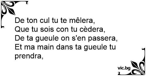 De ton cul tu te mêlera,...