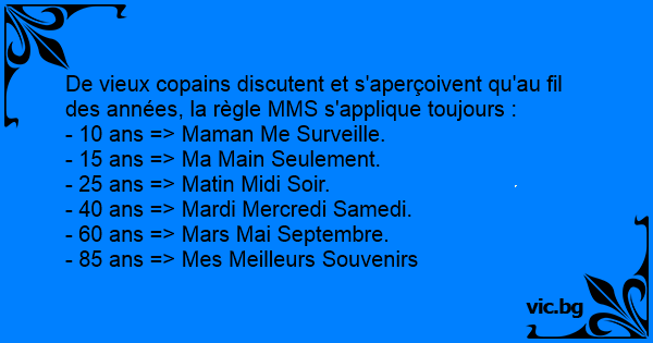 De vieux copains discutent et s'aperçoivent qu'au fil des années, la règle MMS s'applique toujours :