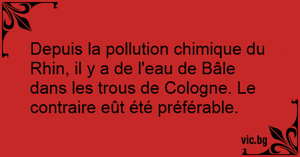 Depuis la pollution chimique du Rhin, il y a de l'eau de Bâle dans les trous de Cologne. Le contraire eût été préférable.