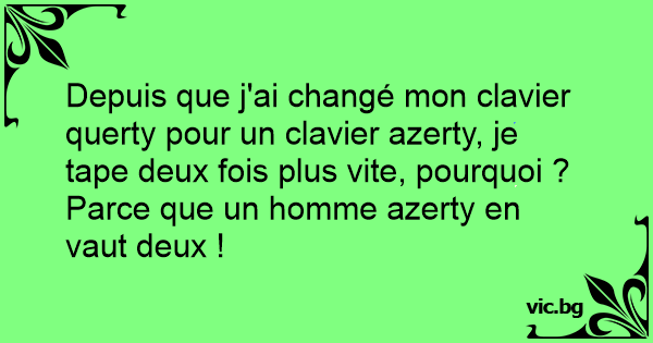 Depuis que j'ai changé mon clavier querty pour un clavier azerty, je tape deux fois plus vite, pourquoi ? Parce que un homme azerty en vaut deux !
