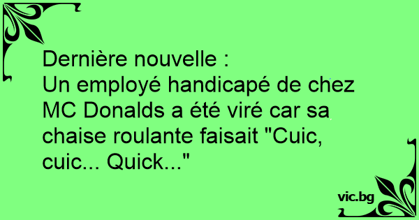 Un employé handicapé de chez MC Donalds a été viré car sa chaise roulante faisait "Cuic, cuic... Quick..."