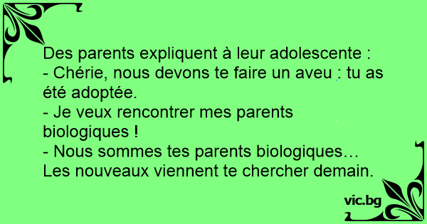 - Chérie, nous devons te faire un aveu : tu as été adoptée.