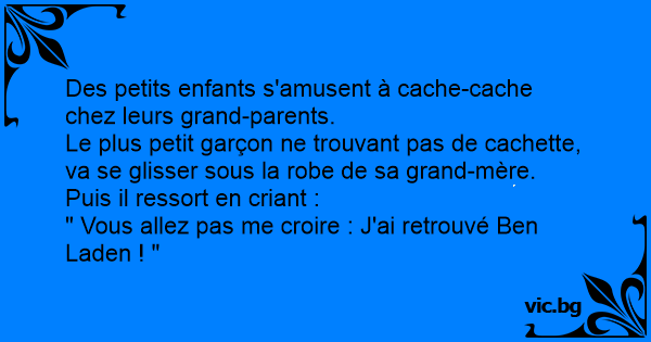 Le plus petit garçon ne trouvant pas de cachette, va se glisser sous la robe de sa grand-mère.