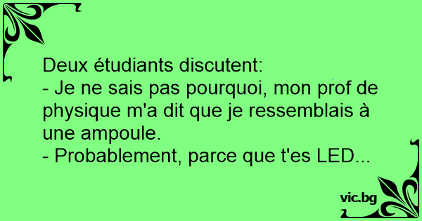 - Je ne sais pas pourquoi, mon prof de physique m'a dit que je ressemblais à une ampoule.