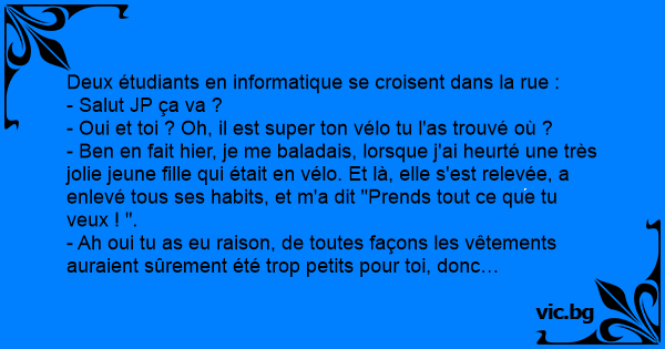 Deux étudiants en informatique se croisent dans la rue :