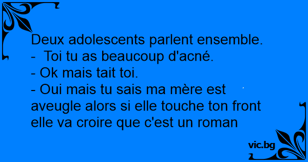 - Oui mais tu sais ma mère est aveugle alors si elle touche ton front elle va croire que c'est un roman
