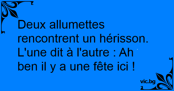 Deux allumettes rencontrent un hérisson. L'une dit à l'autre : Ah ben il y a une fête ici !