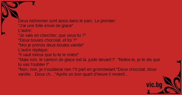Deux Alzheimer sont assis dans le parc. Le premier: