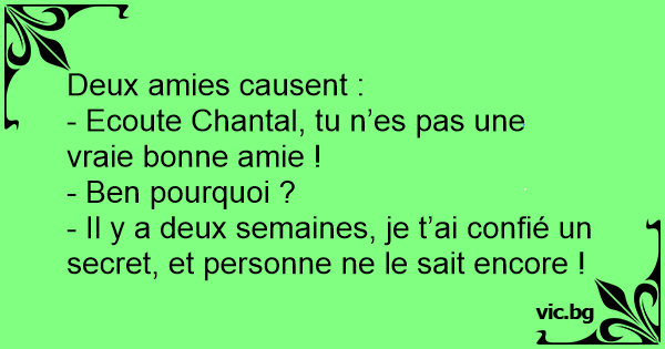 - Il y a deux semaines, je t’ai confié un secret, et personne ne le sait encore !