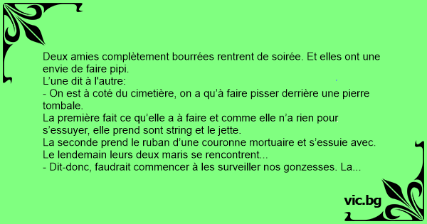 - Dit-donc, faudrait commencer à les surveiller nos gonzesses. La mienne est rentrée complètement bourrée, et sans culotte.