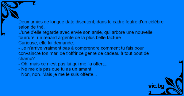- Je n'arrive vraiment pas à comprendre comment tu fais pour convaincre ton mari de t'offrir ce genre de cadeau à tout bout de champ?