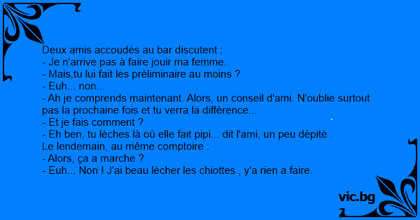 - Eh ben, tu lèches là où elle fait pipi... dit l'ami, un peu dépité .