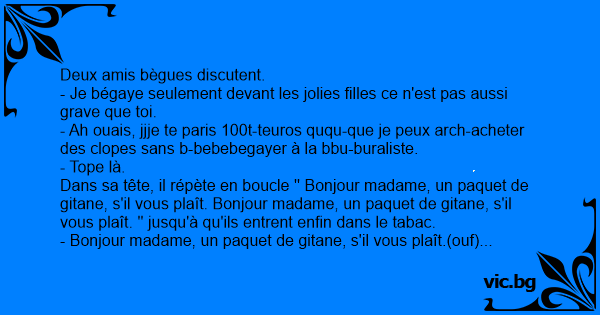 - Ah ouais, jjje te paris 100t-teuros ququ-que je peux arch-acheter des clopes sans b-bebebegayer à la bbu-buraliste.