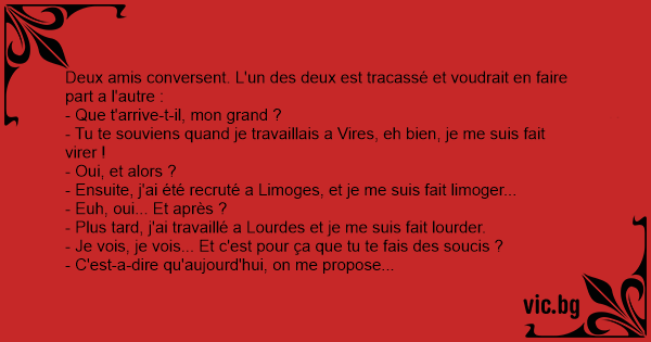 - Plus таrd, j'ai travaillé a Lourdes et je me suis fait lourder.