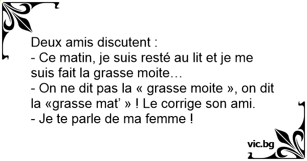 - On ne dit pas la « grasse moite », on dit la «grasse mat’ » ! Le corrige son ami.
