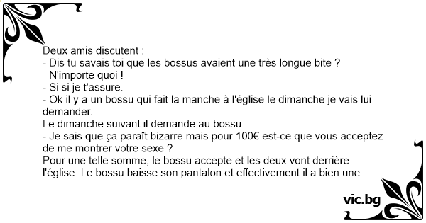 - Dis tu savais toi que les bossus avaient une très longue bite ?