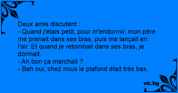 - Quand j'étais petit, pour m'endormir, mon père me prenait dans ses bras, puis me lançait en l'air. Et quand je retombait dans ses bras, je dormait.