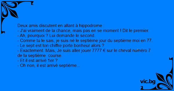 - Exactement. Mais, Je suis aller jouer 7777 € sur le cheval numéro 7 de la septième course.