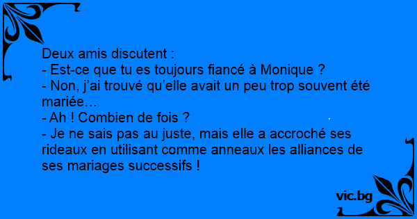 - Est-ce que tu es toujours fiancé à Monique ?