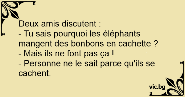 - Tu sais pourquoi les éléphants mangent des bonbons en cachette ?