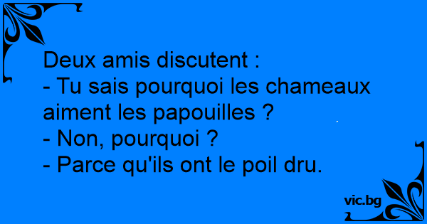 - Tu sais pourquoi les chameaux aiment les papouilles ?