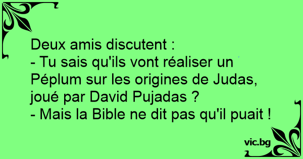- Tu sais qu'ils vont réaliser un Péplum sur les origines de Judаs, joué par David Pujadas ?