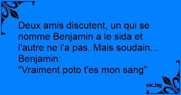 Deux amis discutent, un qui se nomme Benjamin a le sida et l'autre ne l'a pas. Mais soudain...