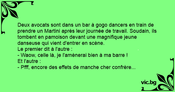 Deux avocats sont dans un bar à gogo dancers en train de prendre un Martini après leur journée de travail. Soudain, ils tombent en pamoison devant une magnifique jeune danseuse qui vient d'entrer en scène.