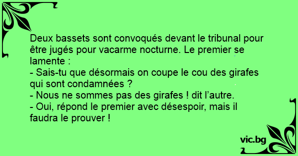 Deux bassets sont convoqués devant le tribunal pour être jugés pour vacarme nocturne. Le premier se lamente :