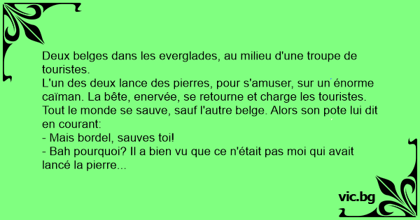 Tout le monde se sauve, sauf l'autre belge. Alors son pote lui dit en courant: