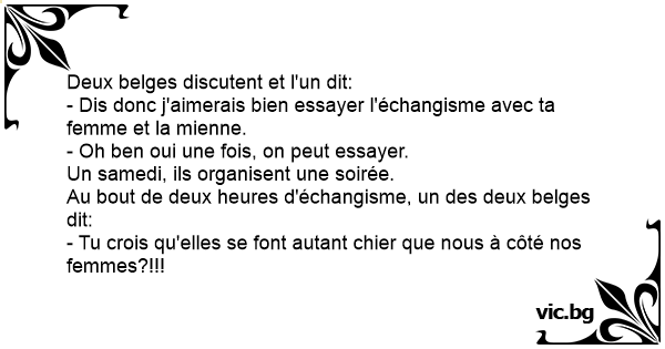 Au bout de deux heures d'échangisme, un des deux belges dit: