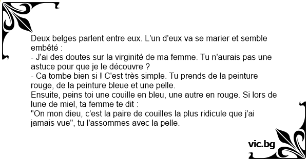 - J'ai des doutes sur la virginité de ma femme. Tu n'aurais pas une astuce pour que je le découvre ?