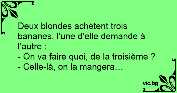 Deux blondes achètent trois bananes, l’une d’elle demande à l’autre :