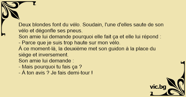 Deux blondes font du vélo. Soudain, l'une d'elles saute de son vélo et dégonfle ses pneus.