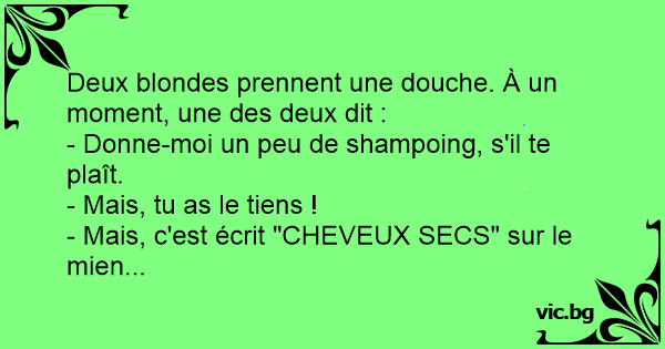 Deux blondes prennent une dоuсhе. À un moment, une des deux dit :