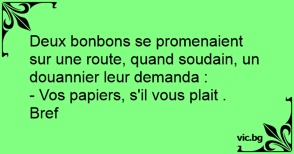 Deux bonbons se promenaient sur une route, quand soudain, un douannier leur demanda :