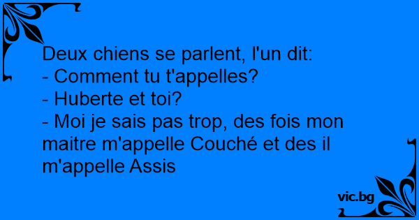 - Moi je sais pas trop, des fois mon maitre m'appelle Couché et des il m'appelle Assis