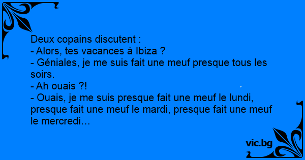 - Ouais, je me suis presque fait une meuf le lundi, presque fait une meuf le mardi, presque fait une meuf le mercredi…