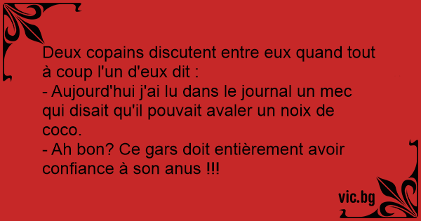 - Aujourd'hui j'ai lu dans le journal un mec qui disait qu'il pouvait avaler un noix de coco.