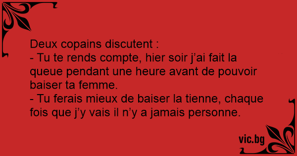 - Tu te rends compte, hier soir j’ai fait la queue pendant une heure avant de pouvoir baiser ta femme.
