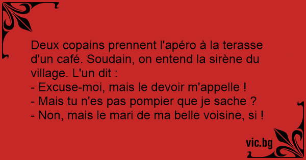 Deux copains prennent l'apéro à la terasse d'un café. Soudain, on entend la sirène du village. L'un dit :